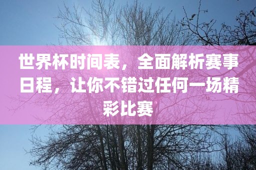 作为自媒体作者,为了帮助广大球迷更好地关注即将到来的世界杯赛事,特此为大家奉上详细的世界杯时间表,本文将全面解析整个赛事的日程安排,让你不错过任何一场精彩比赛。
