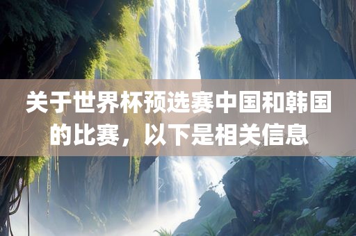 在世界杯预选赛中,中国和韩国都是亚洲地区的足球强队,两队之间的比赛总是备受关注,以上信息仅供参考,如需了解更多关于世界杯预选赛中国和韩国比赛的信息,请查询相关体育新闻或咨询相关人士。