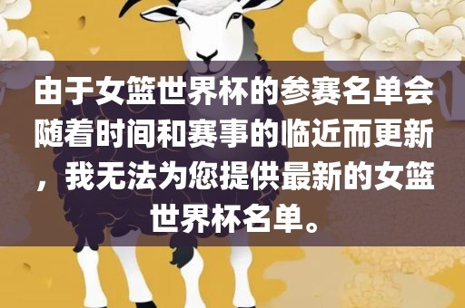 由于女篮世界杯的参赛名单会随着时间和赛事的临近而更新,我无法为您提供最新的女篮世界杯名单。