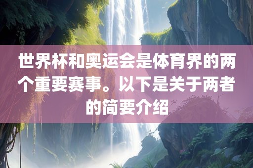 世界杯和奥运会是体育界的两个重要赛事。以下是关于两者的简要介绍