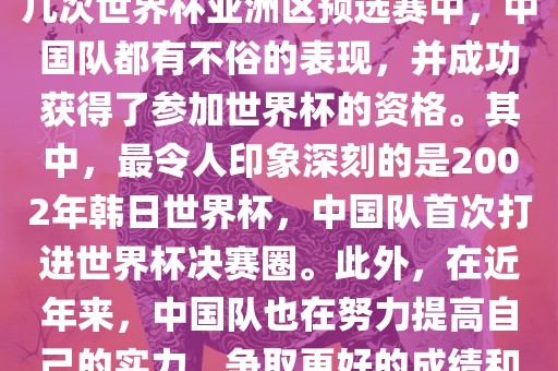 中国队在世界杯亚洲区预选赛中表现出色,成功晋级世界杯决赛圈。在多次预选赛中表现不俗,并获得了参加世界杯的资格。特别是在2002年韩日世界杯,中国队首次打进决赛圈。近年来,中国队实力提升,具备冲击世界杯出线名额的潜力和实力。