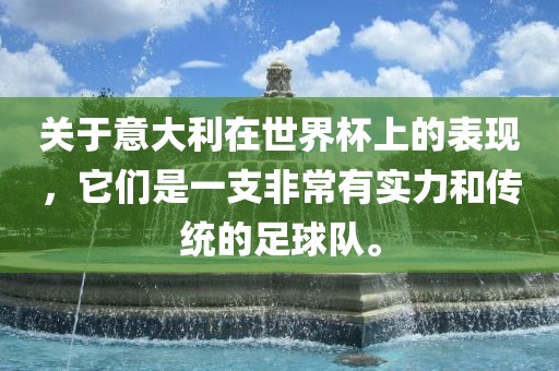 关于意大利在世界杯上的表现,它们是一支非常有实力和传统的足球队。