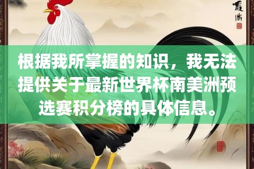 根据我所掌握的知识,我无法提供关于最新世界杯南美洲预选赛积分榜的具体信息。