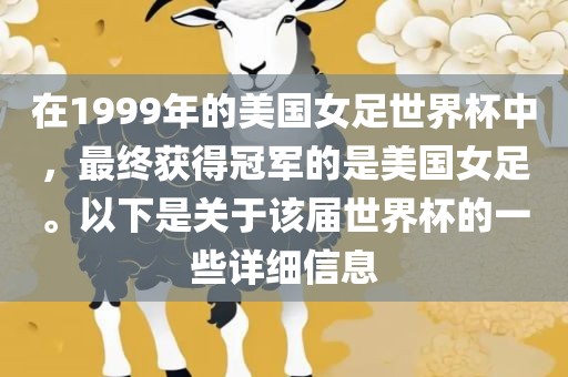 在1999年的美国女足世界杯中,最终获得冠军的是美国女足。以下是关于该届世界杯的一些详细信息