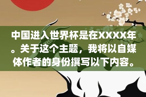 中国进入世界杯是在XXXX年。关于这个主题,我将以自媒体作者的身份撰写以下内容。