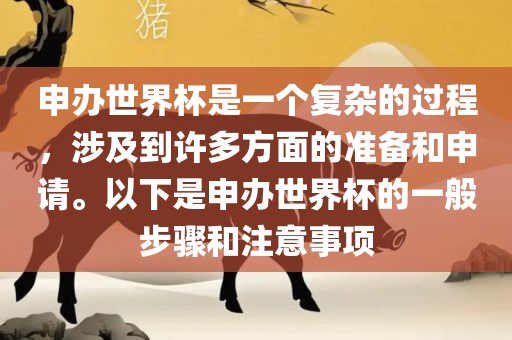 申办世界杯是一个复杂的过程,涉及到许多方面的准备和申请。以下是申办世界杯的一般步骤和注意事项